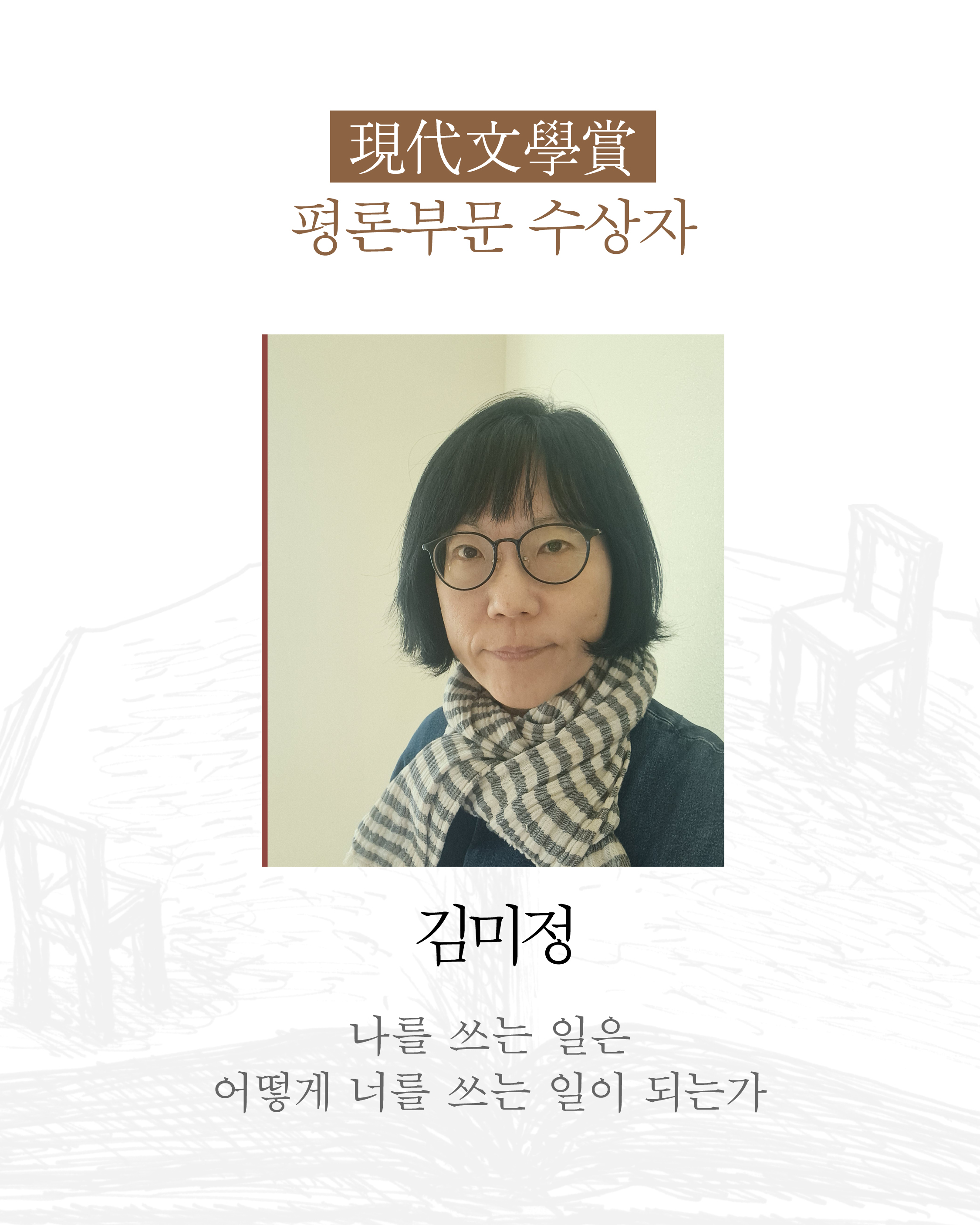 평론부문에서는 김미정의 「나를 쓰는 일은 어떻게 너를 쓰는 일이 되는가」가